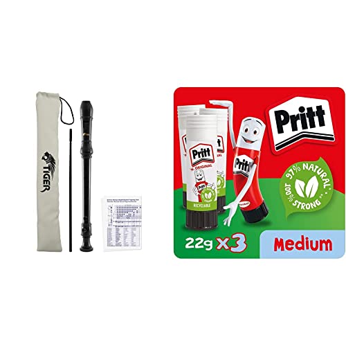 Tiger REC2-BK Descant Recorder - Black & Pritt Glue Stick, Safe & Child-Friendly Craft Glue for Arts & Crafts Activities, Strong-Hold adhesive for School & Office Supplies, 22 g