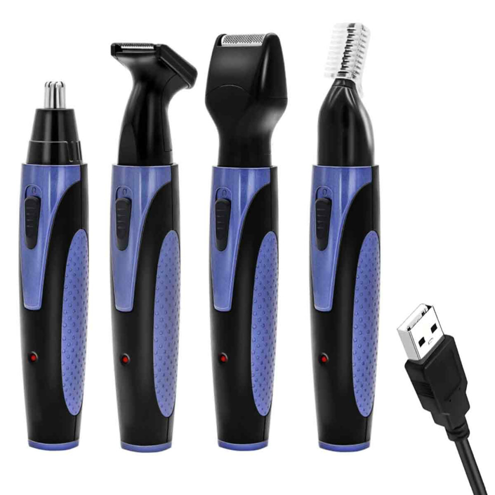 Facial Grooming Kit for Men, 4 IN 1 Rechargeable Nose Hair Stubble Beard Ear Eyebrow Shaver, RECHARGEABLE Electric Trimmer with Long-Lasting Battery