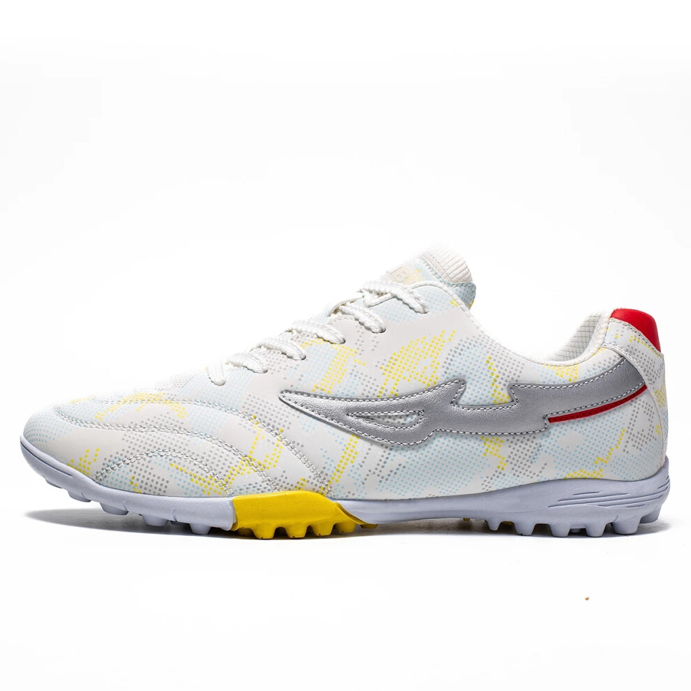 (2309-S-White, 46) Mens Football Field Boots TF/AG High Quality Professional Fast Grass Soccer Shoes Ultralight Training Studded Football Boots