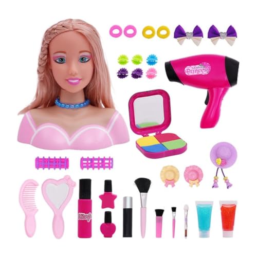 HDBHSBE Doll Head for Hair Styling 35Pcs/Set Simulated Styling Head Doll for Kids with Battery Powered Hair Dryer Imaginative & Makeup Learning Pretend Play Toys for Girls, Style 1