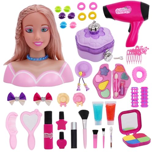 KYEQATY Styling Head Doll for Kids 35PCS/Set Kids Hairdressing Set Safe Hair Style Doll Head for Girls Make up Hairdressing Set Hair Styling Doll for Girls Gift
