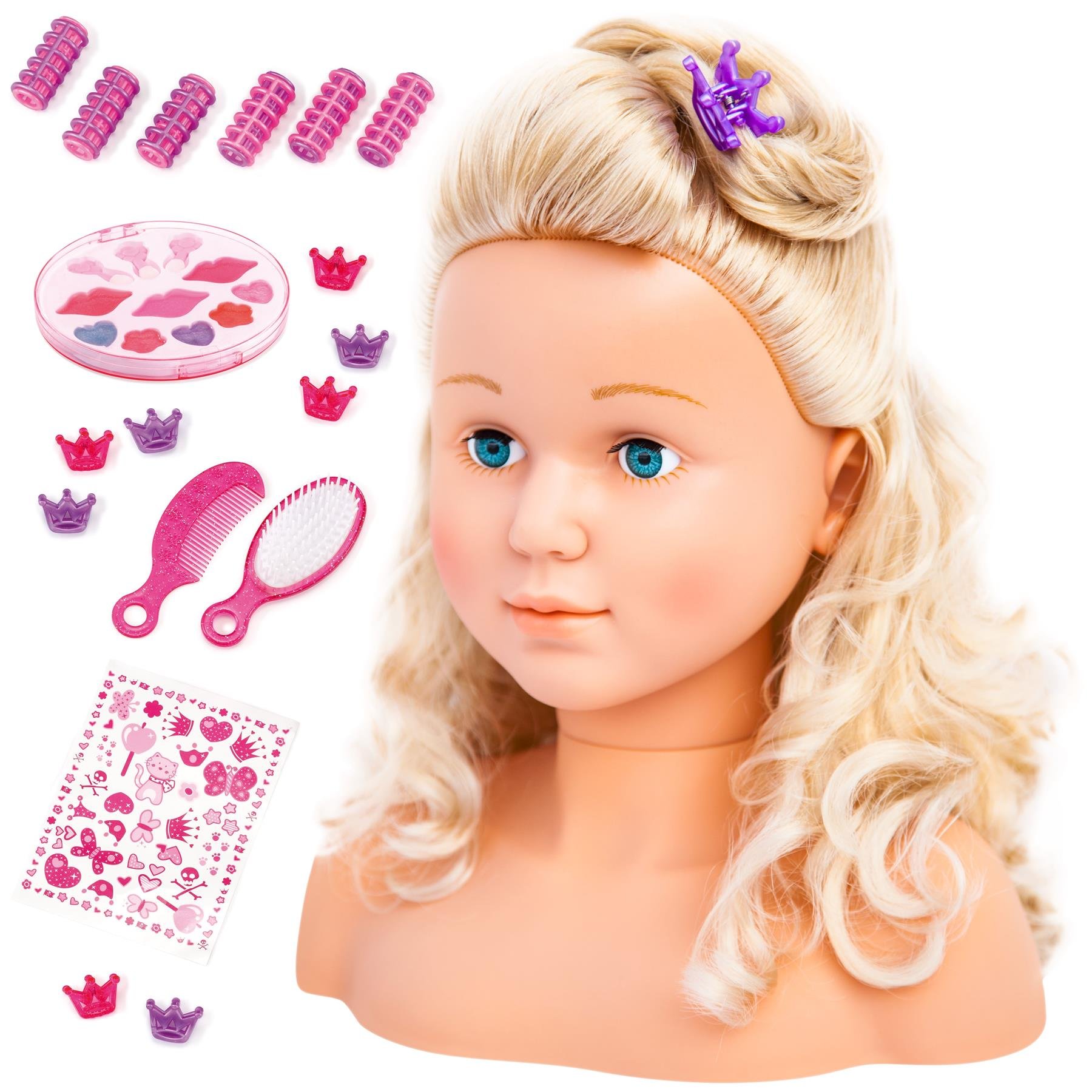 Styling Head Doll for Kids with 25-Piece Hairdressing Set - Colourful Extensions & Royal Accessories - Make Up Dolls Head for Girls Aged 3+, Gifts Birthday Role Play Toys