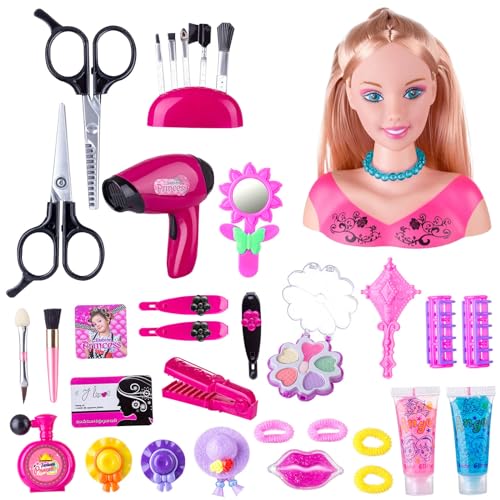 Kaoliscious Kids Hairdressing Makeup Styling Head Doll with Hairdryer and Hairpin, 34PCS Girl's Pretend Play Makeup Set, Hair Styling Head Doll 2025 Christmas and Birthday Gift