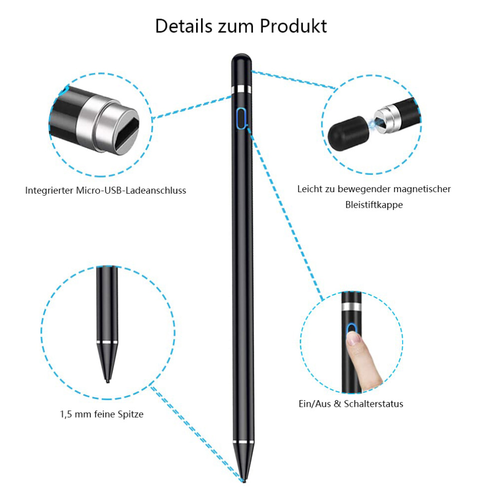 Active Stylus Pens, Your Fine Point Stylist Pen for Universal Compatibility and Fast Charging, with Sensitive Performance (Black)