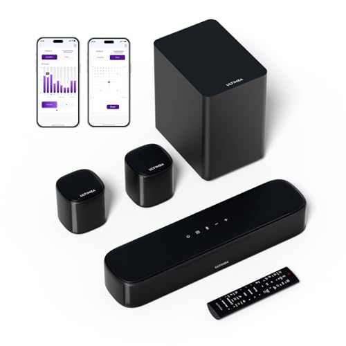 ULTIMEA 5.1ch Sound Bar w/Dolby Atmos, Surround Sound System for TV, App Control, Home Theater Sound System, TV Soundbar with Subwoofer, 2 Surround Speakers, HDMI eARC/OPT/AUX/BT, Aura A50 Pro
