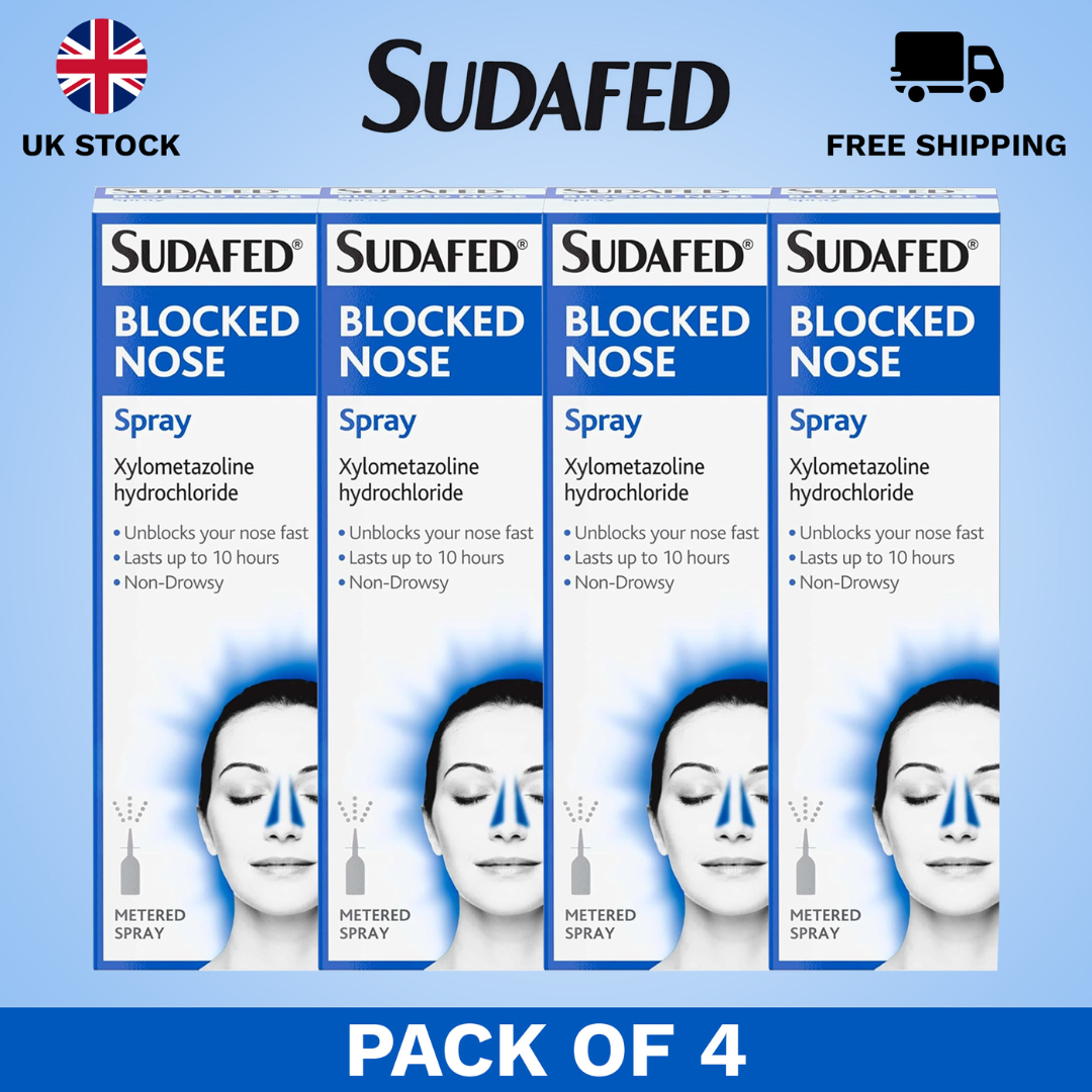 4x Sudafed - Blocked Nose Nasal spray - Non-Drowsy | Lasts Up to 10 Hours - 10ml