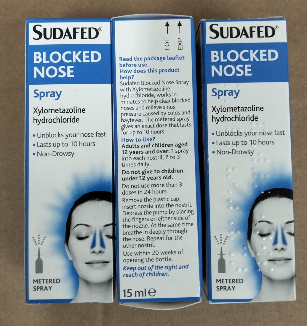3x Sudafed Plus Blocked Nose Nasal Spray – 1mg/50/mg 10ml 100% ORIGINAL ⭐⭐⭐⭐⭐