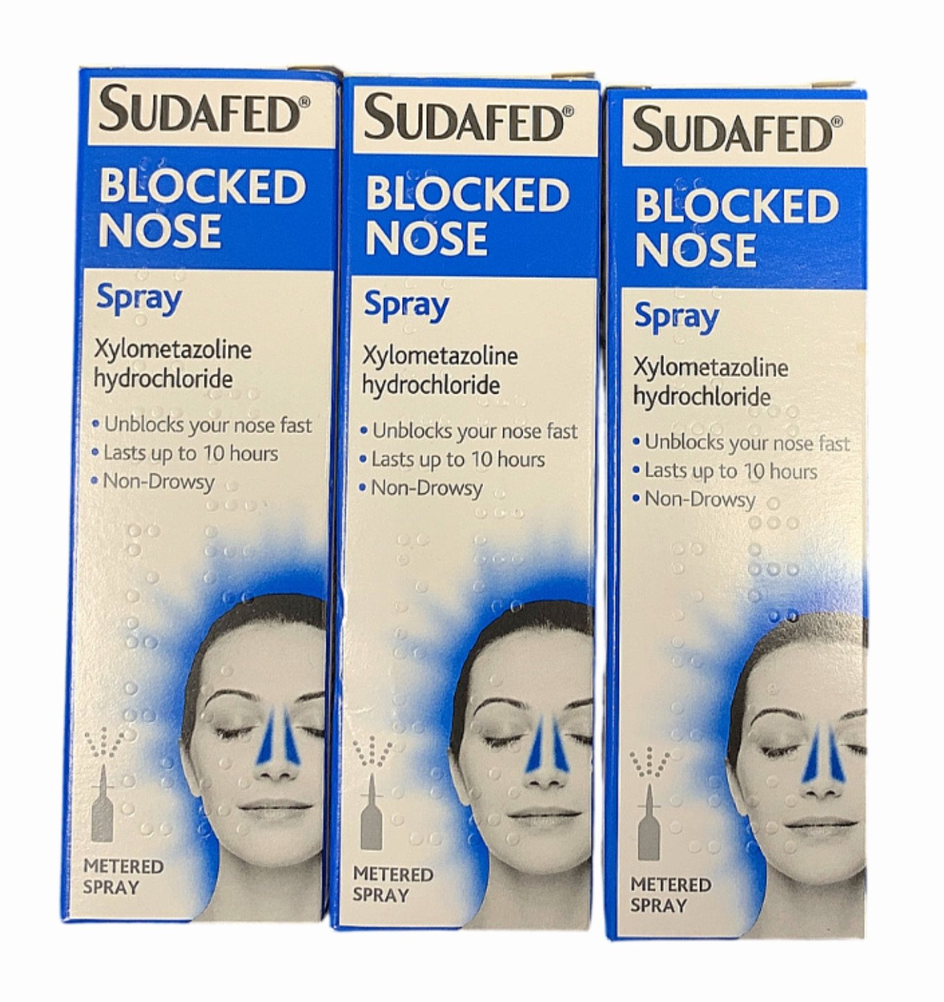 SUDAFED BLOCKED NOSE NASAL SPRAY 3 x 10ml New