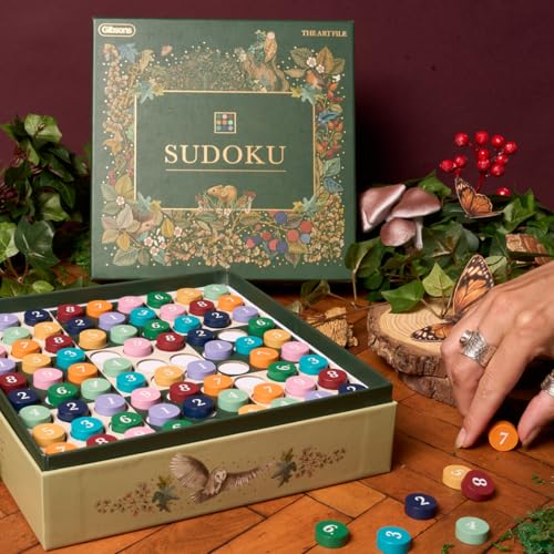Gibsons The Art File Sudoku Board Adult Kids Game Classic Traditional Fun 150 Puzzles 81 Coloured Wooden Checkers, Dual-sided, Ages 8+, Green Luxury Box with Special Finish Brain Logic Teaser For Home