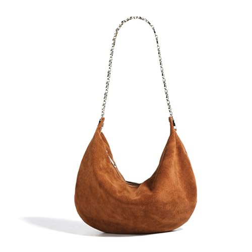 Brown Suede Tote Bag for Women, Large Suede Crescent Shoulder Bag Suede Hobo Bag, Ladies Suede Handbag Slouch Bag (Brown)