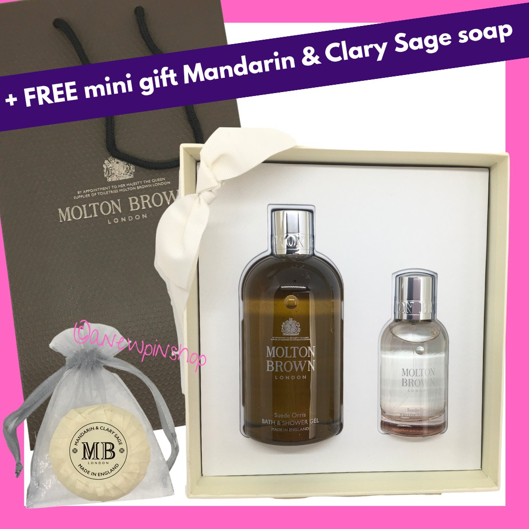 MOLTON BROWN Suede Orris Bath Gel 300ml + EDT 50ml Gift Set Box & Gift Bag