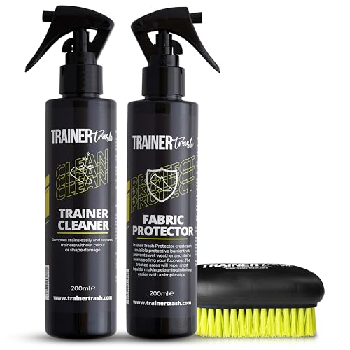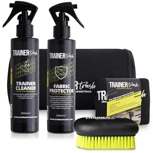 Trainer Trash Shoe Cleaning & Protection Kit Includes Powerful Shoe Cleaner Spray, Waterproof Protector Spray and Shoe Brush - Shoe care kit for Trainers, Sport Shoes, Suede Boots, and more
