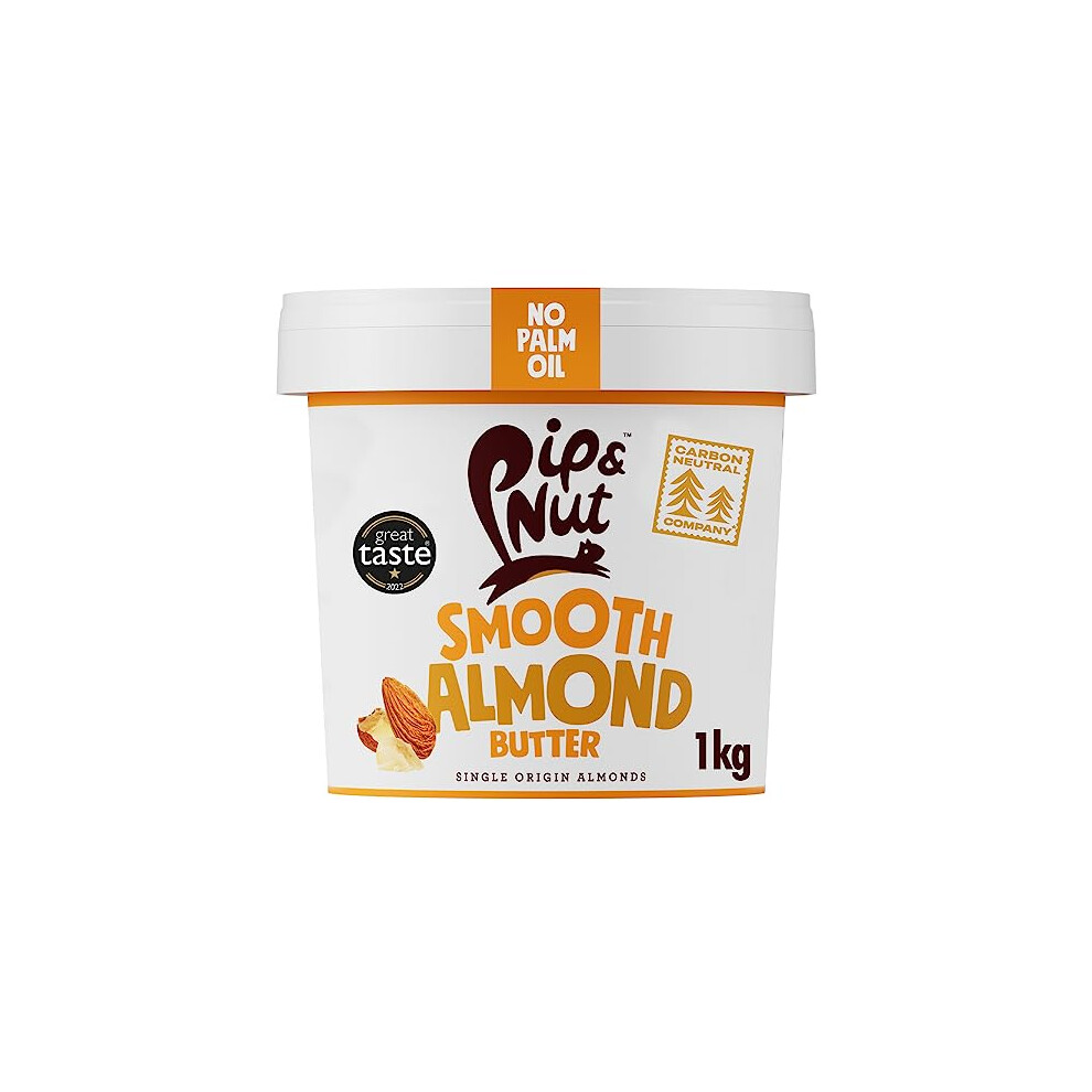 Pip & Nut - Smooth Almond Butter (1kg) | Natural Nut Butter, No Palm Oil, No Added Sugar, Hi-Oleic Almonds, High in Unsaturated Fats, Gluten Free, Vegan, Dairy Free