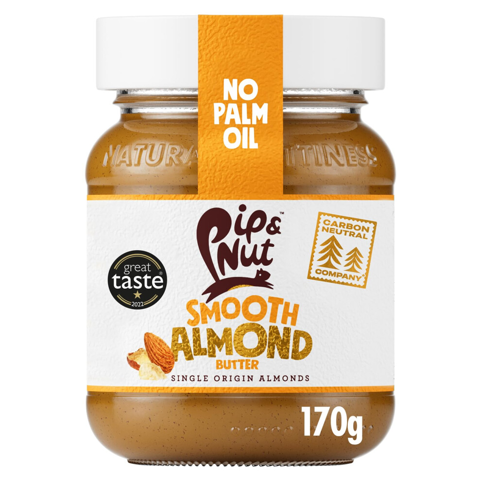 Pip & Nut - Smooth Almond Butter (6 x 170g) | Natural Nut Butter, No Palm Oil, No Added Sugar, Hi-Oleic Almonds, High in Unsaturated Fats, Gluten Free, Vegan, Dairy Free