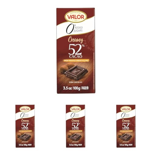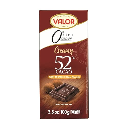 Valor Sugar Free Dark Chocolate Bar - Dark Diabetic Chocolate with Truffle Cream - Delicious Sugar free Chocolate with 52% Cacao, Sweetened with Stevia, Gluten Free, by Master Chocolatiers, 100g Bar