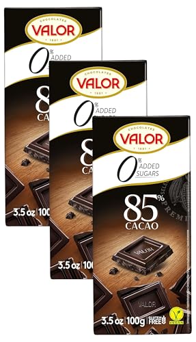 Valor Sugar Free Chocolate – Keto Low Carb Large Chocolate Bar - Diabetic Chocolate – Gluten Free, No Added Sugar, & Vegan Chocolate – 85% Extra Dark Chocolate – Stevia Chocolate 100g Bars (Pack of 3)