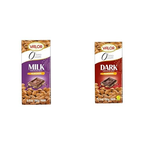 Valor Sugar Free Almond Chocolate Bar Bundle - 2 items - Milk Chocolate with Almonds and Dark Chocolate with Almonds