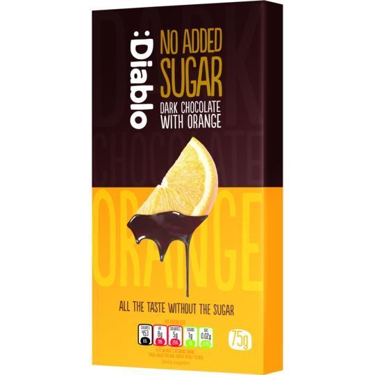 Diablo Sugar Free Diablo Dark Chocolate Bar with Orange 75g (Pack of 12)