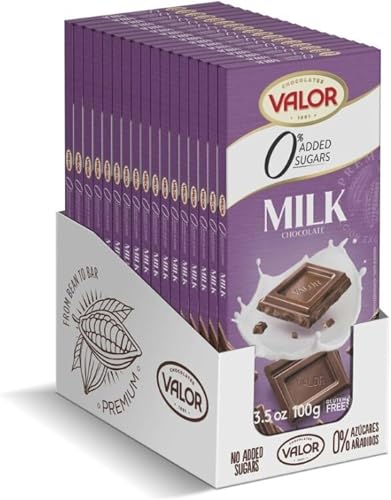 Valor Sugar Free Milk Chocolate Bar - Milk Diabetic Chocolate Bar - Made with Fine Cocoa, Sweetened with Stevia, Gluten Free, by Master Chocolatiers - All the Pleasure Sugar-Free, Box 17 100g Bars