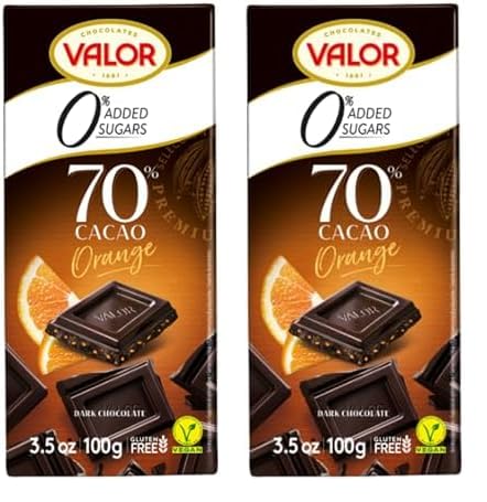 Valor Sugar Free Chocolate – Keto Low Carb Large Chocolate Bar - Diabetic Chocolate – Gluten Free, No Added Sugar, & Vegan Chocolate – 70% Dark Chocolate with Orange Pieces – 100g Bar (Pack of 2)