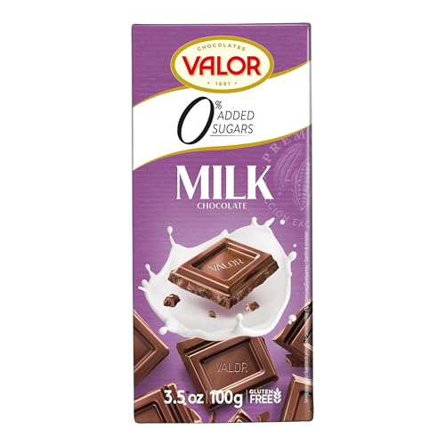 Valor Sugar Free Milk Chocolate Bar - Milk Diabetic Chocolate Bar - Made with Fine Cocoa, Sweetened with Stevia, Gluten Free, by Master Chocolatiers - All the Pleasure Sugar-Free, 100g Bar (Pack of 6)