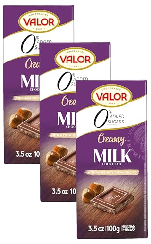 Valor Sugar Free Chocolate – Keto Low Carb Large Chocolate Bar - Diabetic Chocolate – Gluten Free, No Added Sugar – Milk Chocolate with Hazelnut Cream – Stevia Chocolate 100g Bar (Pack of 3)