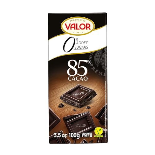 Valor Sugar Free Dark Chocolate Bar - Dark Diabetic Chocolate - Intense Smooth Sugar free made with 85% Cacao, Sweetened with Stevia, Gluten Free, Vegan, by Master Chocolatiers, 100g Bar
