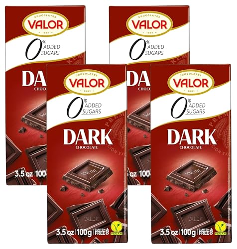 Valor Sugar Free Chocolate – Keto Low Carb Large Chocolate Bar - Diabetic Chocolate – Gluten Free, No Added Sugar, & Vegan Chocolate – Dark Chocolate – Stevia Chocolate 100g Bar (Pack of 4)