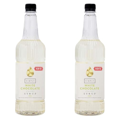 Simply Sugar Free White Chocolate Syrup, Low Calorie, Vegan & Nut Free Flavoured Syrup for Coffee, Cocktails & Baking (1 Litre) (Pack of 2)