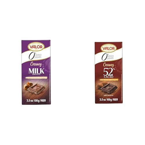 Valor Sugar Free Creamy Chocolate bar Bundle - 2 items - Milk Chocolate with Hazelnut Cream Filling and Dark Chocolate with Truffle Cream Filling