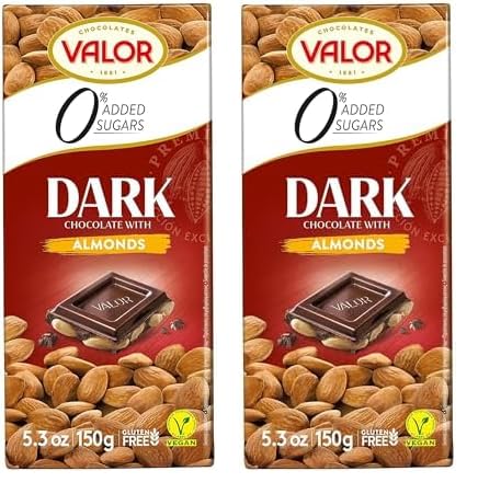 Valor Sugar Free Chocolate – Keto Low Carb Large Chocolate Bar - Diabetic Chocolate – Gluten Free, No Added Sugar, & Vegan Chocolate – Dark Chocolate with Almonds – 150g Bar (Pack of 2)