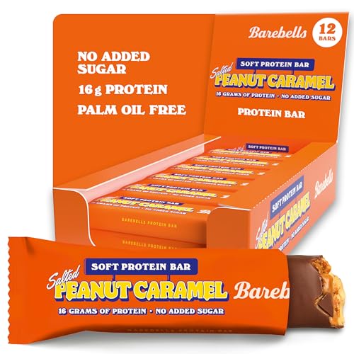 Barebells Soft Protein Bars | 16g protein Healthy Snacks, Protein Snacks for Breakfast, Sugar Free Chocolate, Low Carb – 12 x 55g (Peanut Caramel)