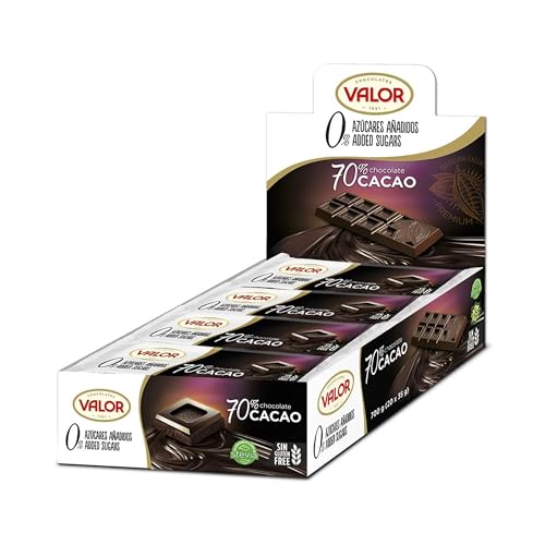 Valor Sugar Free Chocolate Bar - Dark Diabetic Chocolate - Box of 20 Vegan Dark Chocolate Bars made with 70% Cacao, Sweetened with Stevia, Gluten Free, by Master Chocolatiers, Box 20 35g Bars