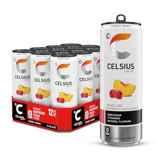 CELSIUS Energy Drink, Sparkling Raspberry Peach, Natural Flavours, No Artificial Colours, Sugar Free Energy Drinks, 355 mL, 12-Pack