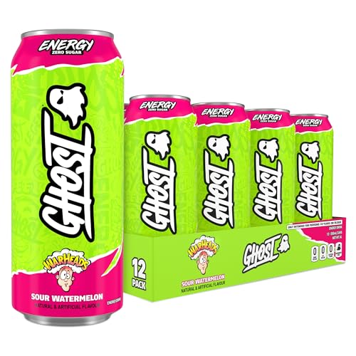GHOST Sugar-Free Energy Drink - 12-Pack, Warheads Sour Watermelon, 500ml Cans - No Artificial Colours - 160mg Natural Caffeine, L-Carnitine & Taurine - Gluten-Free & Vegan Fizzy Drinks