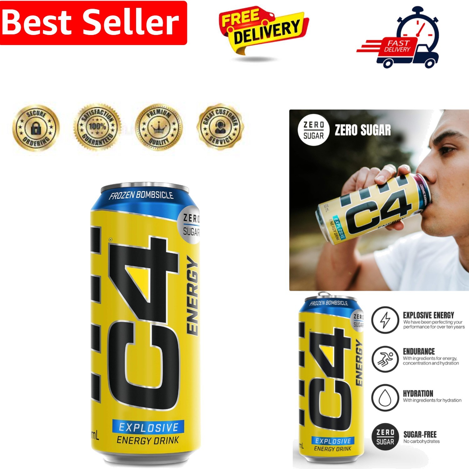 C4 Performance Energy Drinks Frozen Bombsicle 500ml 12 pack | Sugar Free Ener...