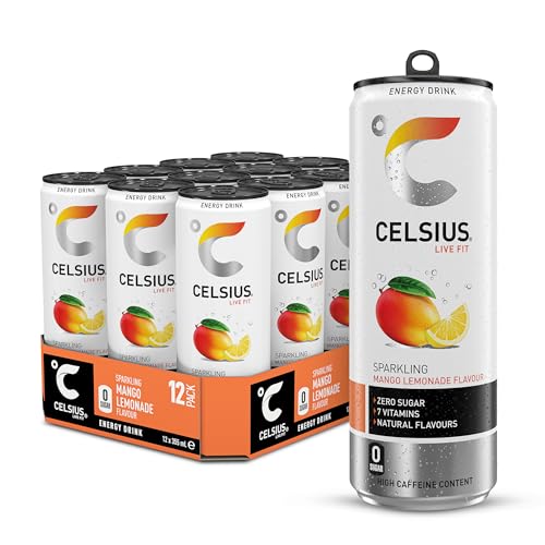 CELSIUS Energy Drink, Sparkling Mango Lemonade, Natural Flavours. No Artificial Colours, Sugar Free Energy Drinks, 355 mL, 12-Pack