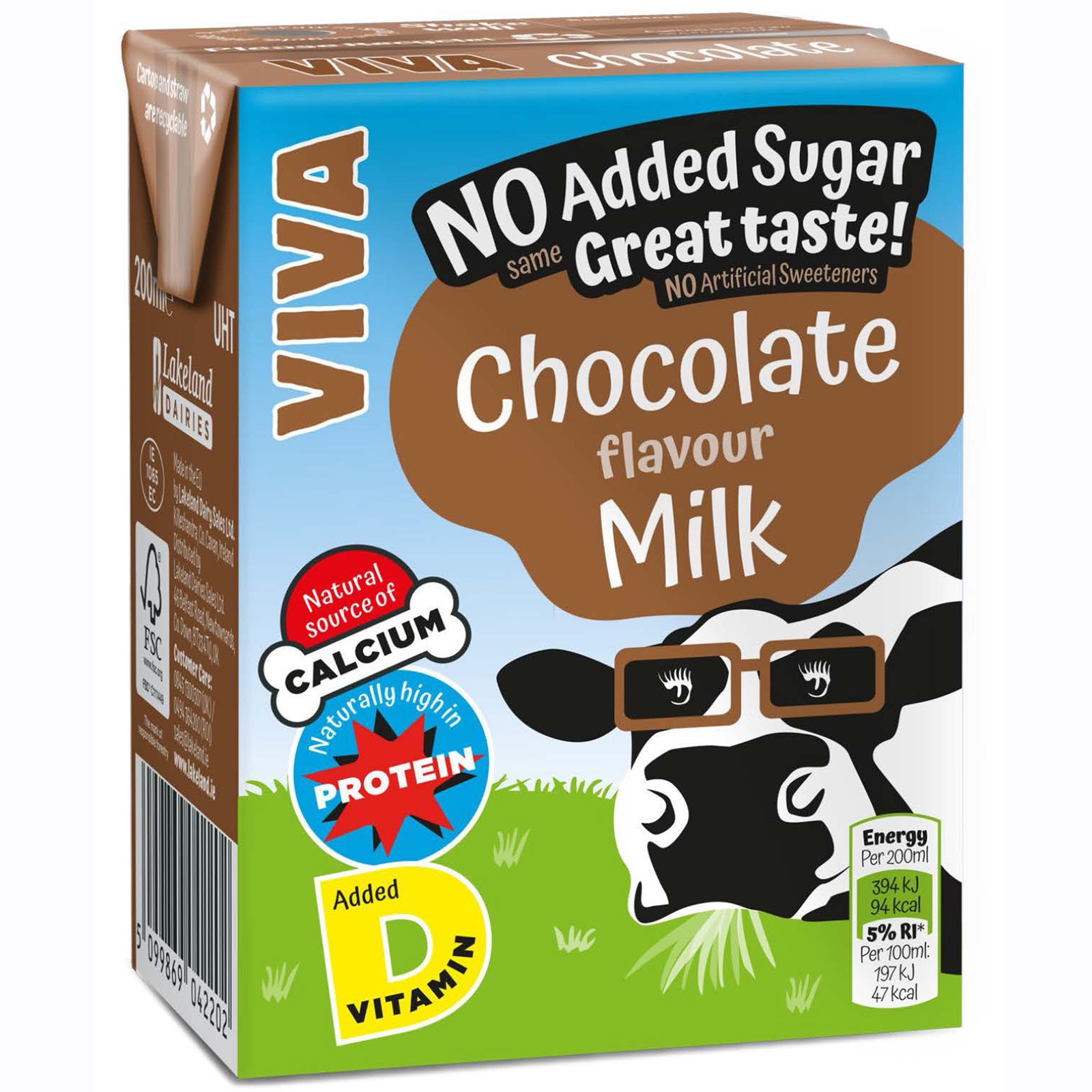 VIVA Chocolate No Added Sugar Milk Drinks | 27x200ml | Free Delivery