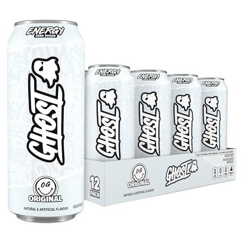 GHOST Sugar-Free Energy Drink - 12-Pack, Original Flavour, 500ml Cans - No Artificial Colours - 160mg Natural Caffeine, L-Carnitine & Taurine - Gluten-Free & Vegan Fizzy Drinks