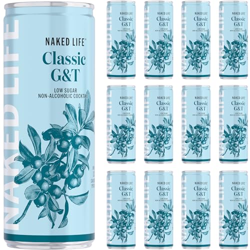 Naked Life Alcohol Free Gin & Tonic Cans – Low Sugar, Low Calorie Non Alcoholic Drinks – Alcohol Free Cocktails & Mocktails Ready to Drink – Classic G&T Taste, 12 x 250ml Cocktail Cans