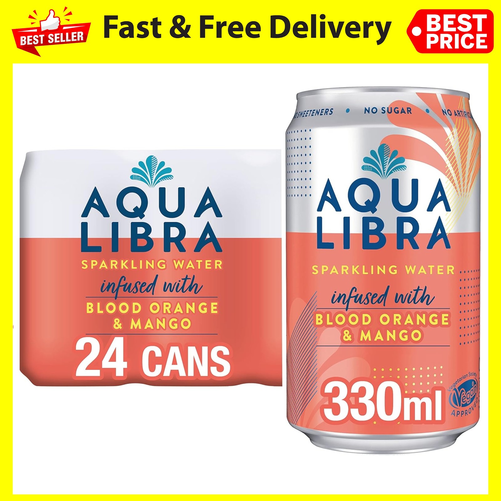 AQUA Libra Sparkling Water, Blood Orange & Mango, Sugar-Free, 330ml (24 Pack)