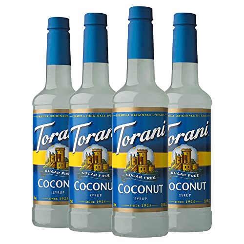 Torani Sugar Free Coconut Coffee Syrup Gift Set (4 x 750ml) - Classic Flavour for Lattes & Iced Drinks - Zero Calorie, Vegan Coffee Flavouring