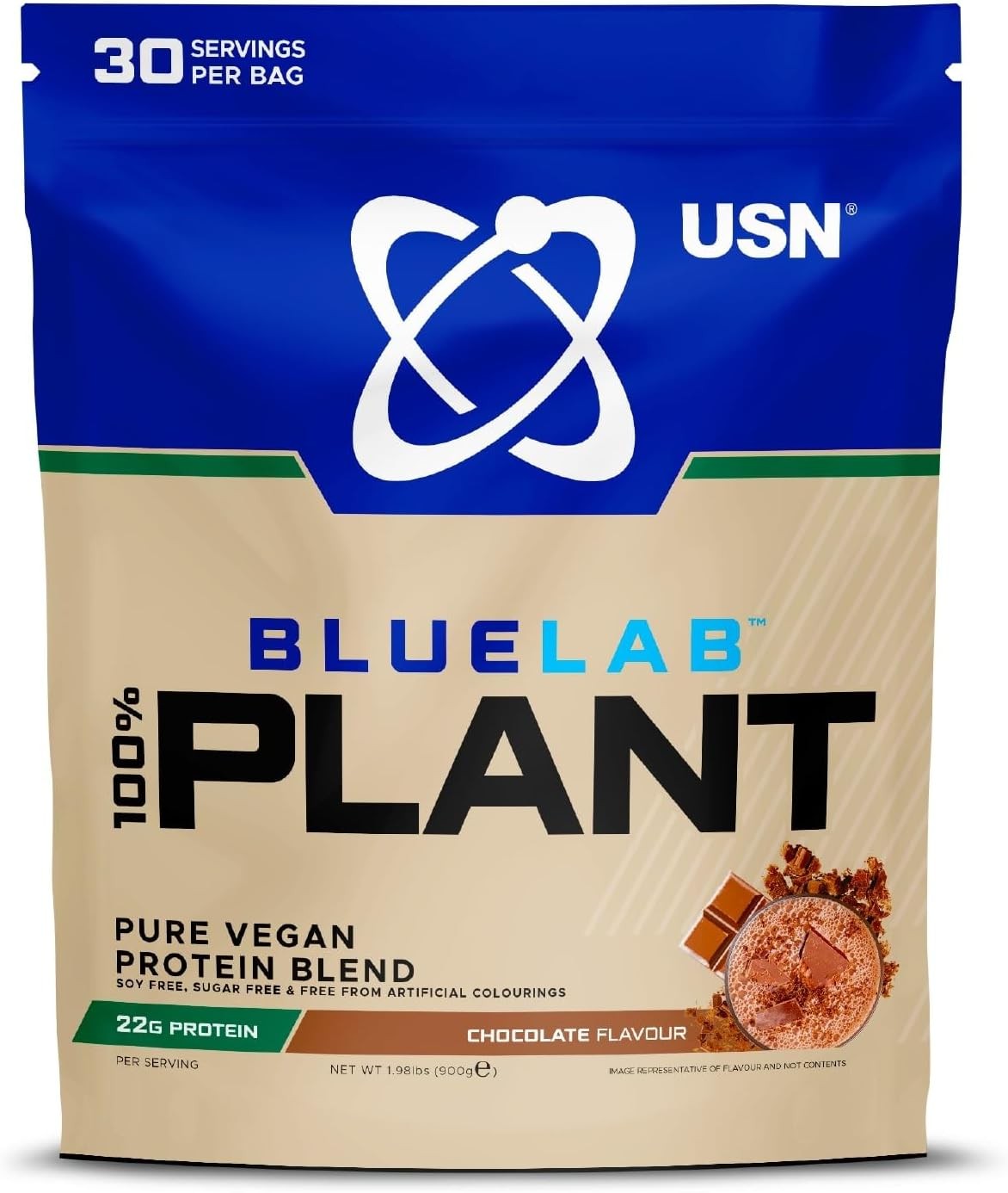 USN 100% Plant Protein Chocolate, Vegan Protein Powder (900g) A Sugar Free, Pla