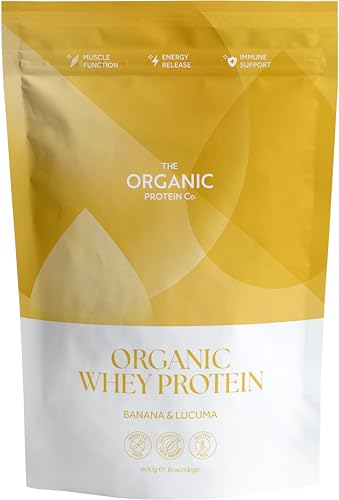 The Organic Protein Co. – Banana & Lucuma Organic Whey Protein Powder | Additive Free, Undenatured, Bioactive, UPF Free, Emulsifier Free, Primarily Grass Fed, Vegetarian, Gluten Free – 600g