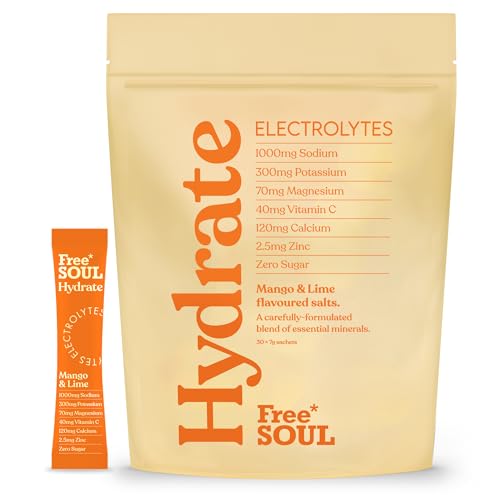 Free Soul Hydrate | Electrolyte Hydration Sachets | Zero Sugar | 30 Sachets | Advanced Electrolyte Powder with Sodium, Magnesium, Vitamin C | Mango & Lime Flavour