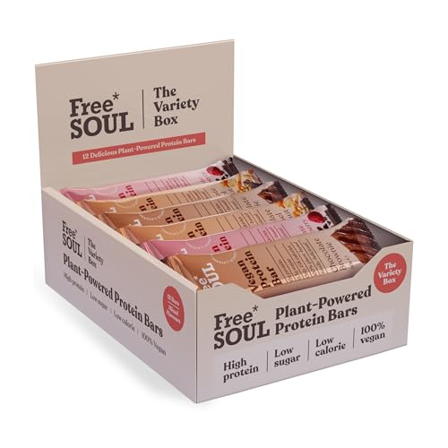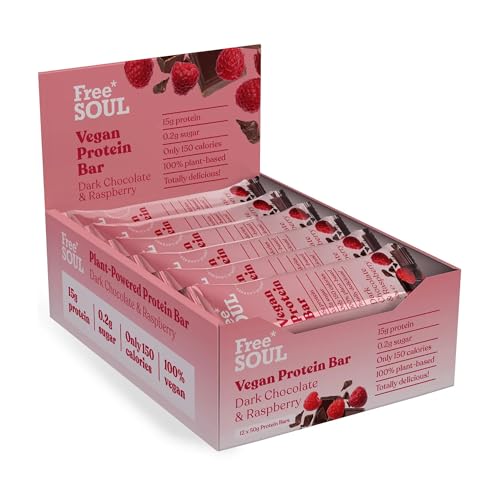 Vegan Protein Bars 12 x 50g | Plant Based Chocolate Protein Bars | Delicious Dairy Free, Low Sugar, Low Carb Bars | Sucralose Free, Gluten Free | 15g of Protein per Bar | Free Soul