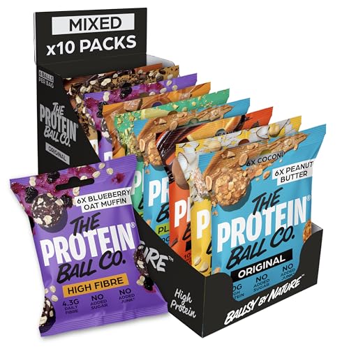 The Protein Ball Co Starter Pack Bundle Protein Balls - Healthy Snacks Variety Box, Gluten-Free - No Added Sugar, Box of 10 Bags