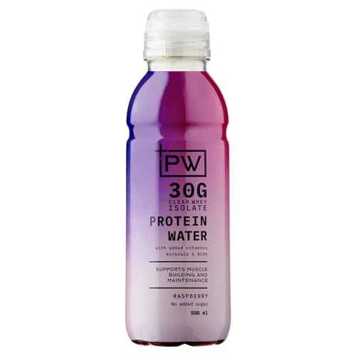 +PW Protein Water – Raspberry Flavour, 12 x 500ml Bottles | 30g Whey Protein Drink | Low Calorie, Sugar-Free Fitness Hydration