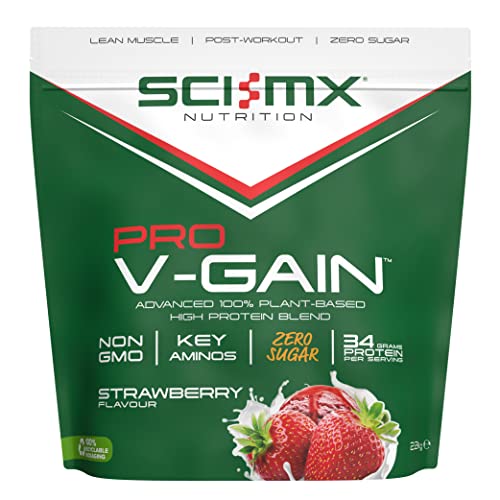 SCI-MX Pro-V Gain - 100% Vegan Strawberry Flavour Soy Protein Powder Isolate + B12 + Magnesium - Muscle Growth & Maintenance - Sugar Free, Non-GMO - 2.2KG (49 servings) 34g of protein per serving