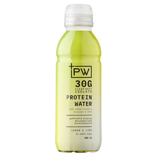+PW Protein Water – Lemon & Lime Flavour, 12 x 500ml Bottles | 30g Whey Protein Drink | Low Calorie, Sugar-Free Fitness Hydration